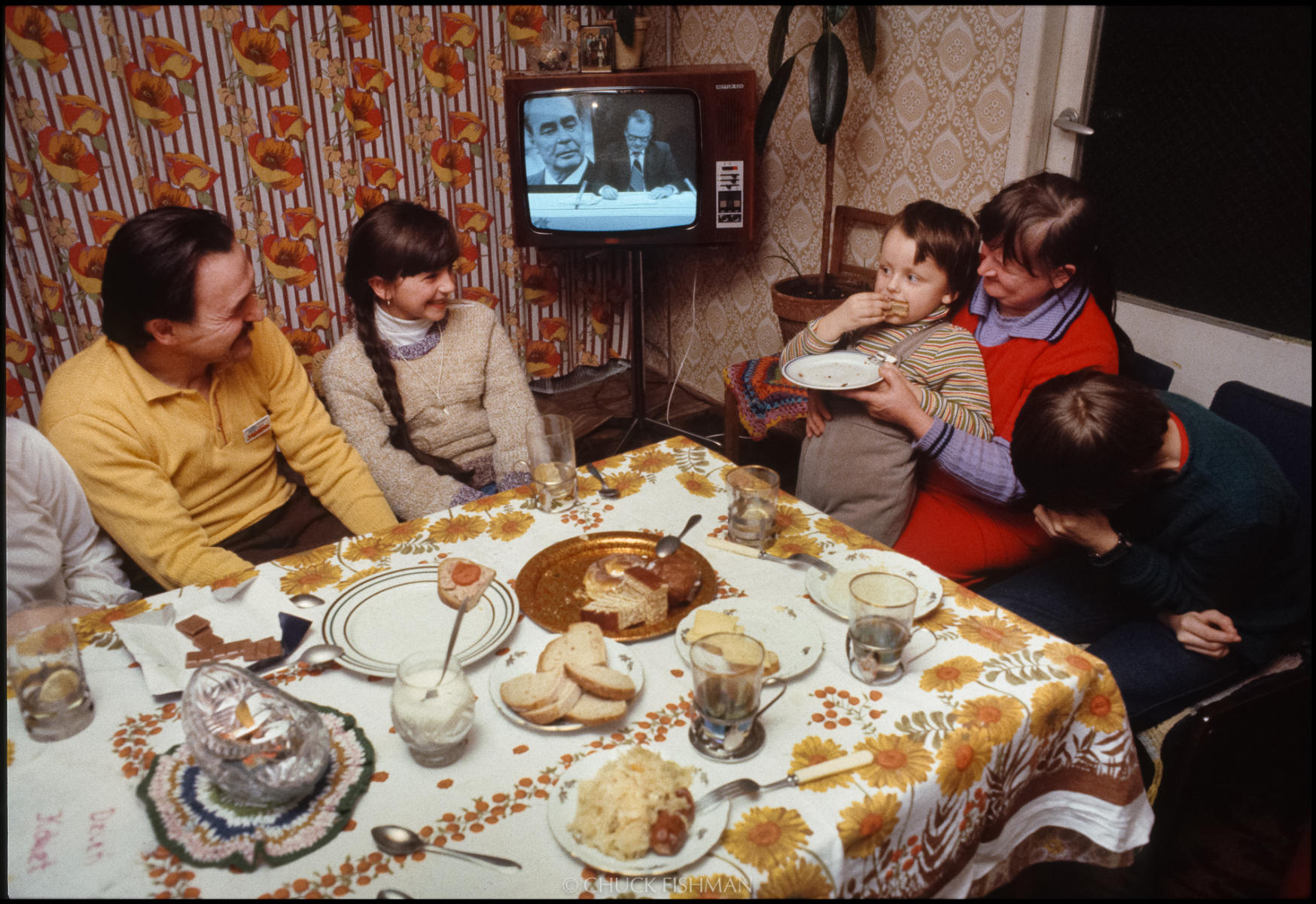 Several international photographers were staying in a private flat of an older couple who were Solidarity supporters. There was room for me so I stayed there too. Well before dawn the next morning I awoke and in the dark of night, tried finding a taxi in the empty streets. I started walking in the direction of his apartment and eventually a car stopped for me. I gave him the address. We arrived, I indicated for him to wait, and I went in to get Walesa and his bodyguard. The taxi driver had no idea who was going to be stepping into his car. Walesa went straight into the front seat and I watched the taxi driver’s eyes bulge out of his head with disbelief. Off we went to church where my photography began. The taxi driver waited. From church we went back to Walesa’s apartment for breakfast where I was able to make private and exclusive pictures with his wife Danuta and family. She made us all ham and eggs. After breakfast and goodbyes, we were off to Solidarity headquarters with the same taxi driver. No one at Solidarity headquarters knew I had established a rapport with Walesa. I was an unknown to them and I had to immediately establish an “I’m with him” kind of thing and stay very close. We pulled up to the entry of the Solidarity building and Lech bolted out of the car followed immediately by his bodyguard. I quickly threw the taxi driver U.S. currency and ran after them, staying as close as I could. Everyone wanted to get close to Walesa and I had to be pushy not to lose my close proximity. After we had climbed the several flights of stairs to his outer office, we found several people waiting for him including photographers. He soon opened the door to his private inner office to step in alone. I looked at him from the doorway as he was about to close it, and, with non-verbal communication, asked if I could come in. He indicated yes. I was in. Just the two of us.